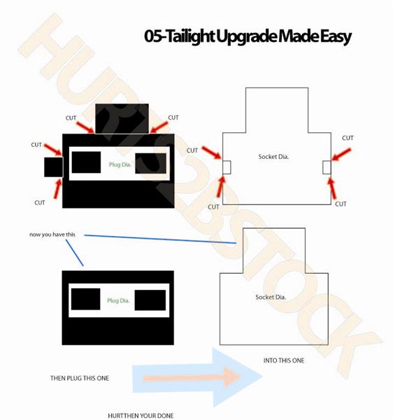 ^^ i just got my 05 tails today an i was going to buy the adaptaplugs tomorrow but i just saw your post and did it! i used an xacto knife to cut off the plastic and everything fits very tight. i wouldnt say its easier but it sure is cheaper! thanks hurts2bstock