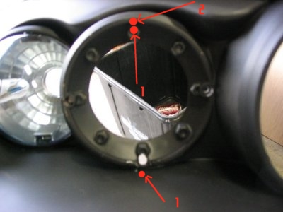 drill a small holes into red dots