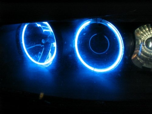 Nice I did that with T1 11,000 MCD LEDS and wired another set over the high beams just like you did. The neon is way brighter. The only way we could get it that bright without neon is if we found some way to use fiber optics like BMW's. Looks good!
