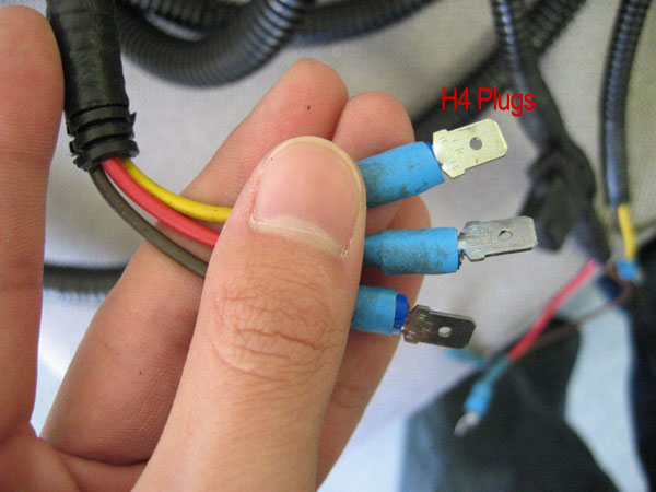 that's how it is. i take those spade plugs and plug them in seperately into the h4 connector on the car.