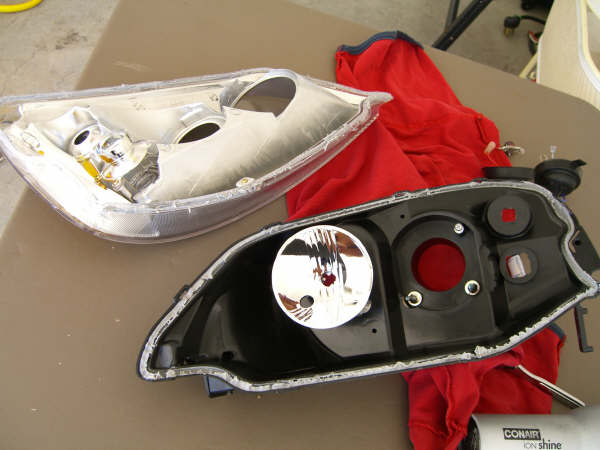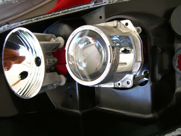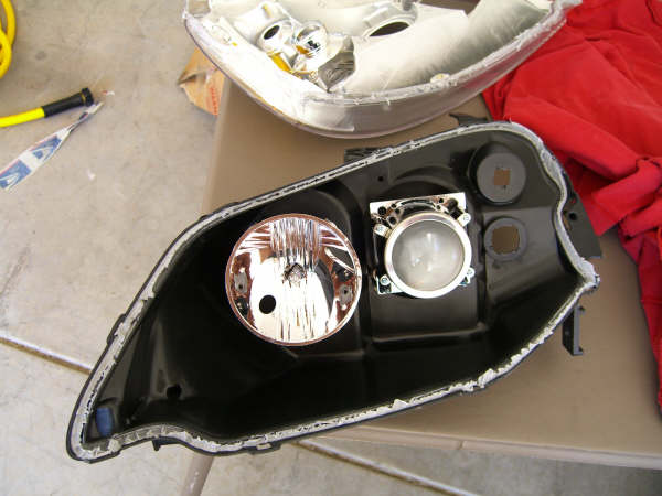 Did you use the stock TYC adjustment screws to hold the projector in place? Was there any cutting of the back of the headlight housing involved?