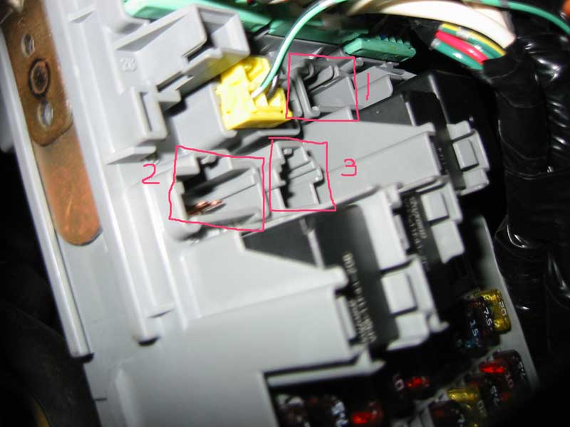 There are two connectors on the harness that plug into the fusebox on the left side above the blackconnectorsThere's a diagram in the instructions showing exactly where they plug. If I'mnot mistaken, there's only one place that each can go. There's another ground to mount onthis part of the harness. I mounted it on the lower right corner bolt of the fusebox