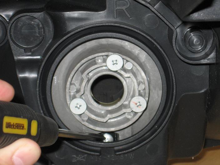 -Removed screw holding the low beam shield. The screw is located behind the reflector pictured in the second pic. Once screw is removed just lift up and the shield will come off. Shield was made of metal.