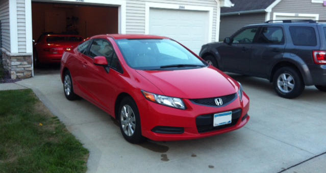 hey everyone...just got my 2012 Civic LX Coupe and joined the forums...i took a couple of pics after i drove it back from the dealership...i cant wait to do some mods! cheers :P