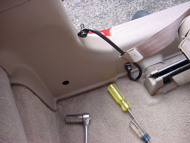 Basically what I wanted to do was add a camera in my car to show what it was like from an in car perspective. I took my tripod and adjusted it so the two front legs were extended out, and adjusted to the height of the floor. Man, your really going to have to take a look at the picture, cant explain this as well as the pic can. The third leg I pushed down into the seat belt hole on the rear passenger side until it touched the sheet metal under the cushion. This was basically good enough, the tripod leg was just a perfect fit in the seat belt hole that it didn’t move around during daily driving. But whatever, I wanted more insurance that it wouldn’t move around with some more aggressive driving. The point of the tie downs is so the camera does not become mobile in the cabin and cause damage to YOU- DO NOT PUT A CAMERA IN YOUR CAR IF IT IS NOT SECURE!!