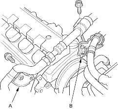 Great, the alternator is out. Now that your probably pissed off to all hell because you had a hard time prying it out of the mounting brackets, let's do something easy. Remove the AC and PS hose bracket from near the valve cover on the drivers side of the engine. The PS bracket is technically infront of the engine near the valve cover again.