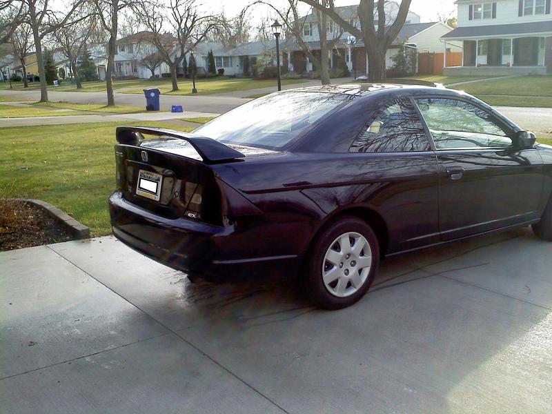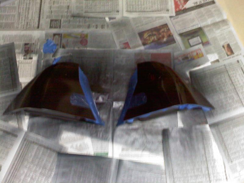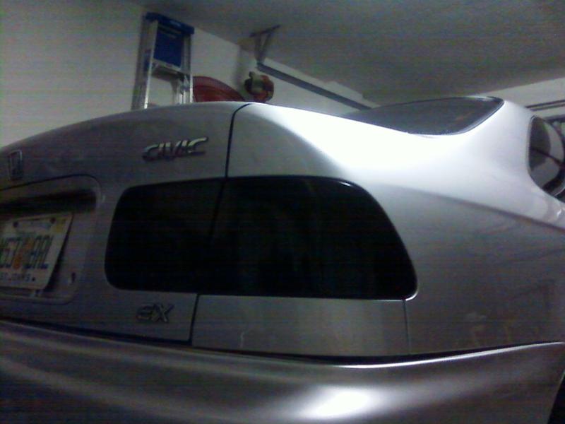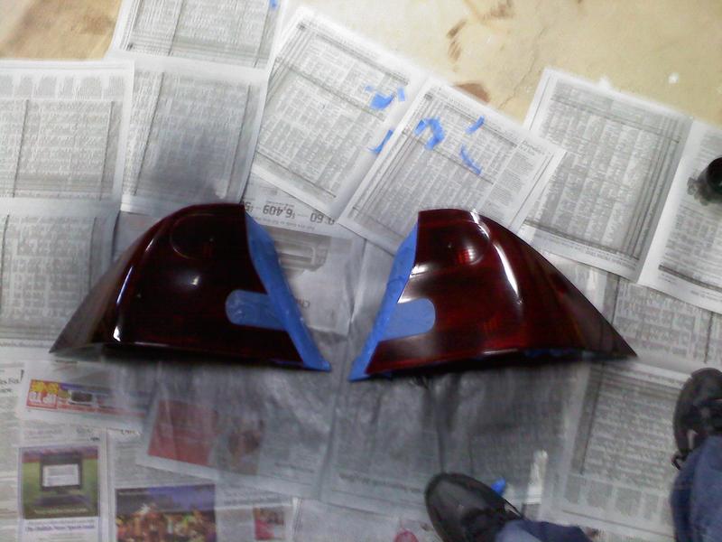 Here is pictures of my car. I didn't bother removing the tail lights. I just tapped off the back end of my car. I did three coats of the tint and two coats of the clear coat.