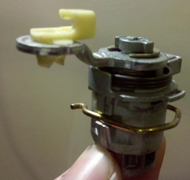 As a side note, in the above pictures with the lock still installed you'll notice that several pieces of the lock are missing (spring, white collar, inside rod holder, and upper C clip) I removed all these pieces trying to figure out how to remove the lock