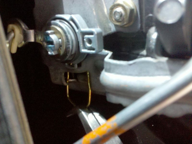 That slot at the bottom of the lock? Blocked by that metal contraption that is behind the door handle. So I couldn't push anything into it to get the clip down to hook it. I started at 5:30 in the evening. I gave up shortly after 9pm and went to Autozone where the guys there proceeded to help me ghetto work it with a 2' long Phillips and some 11" needle nose pliers. They were out of the hooks. Managed to push the C clip down enough to grab it at the bottom with the pliers. Finished the job there in the parking lot about 15 minutes after they'd closed and the guys went home.