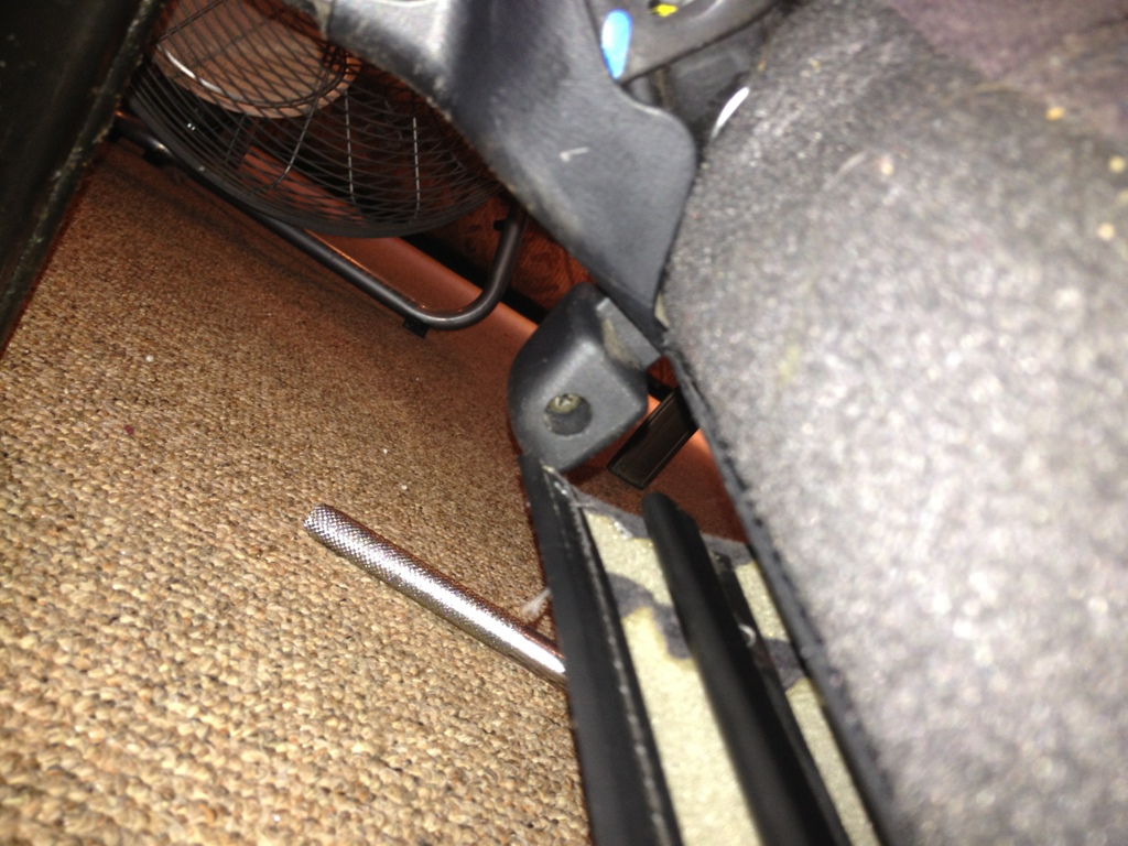 Now, there should be 8 silver bolts total and 4 black bolts near the back of the seat. There are 2 silver bolts on the front right, 2 on the front left, etc.