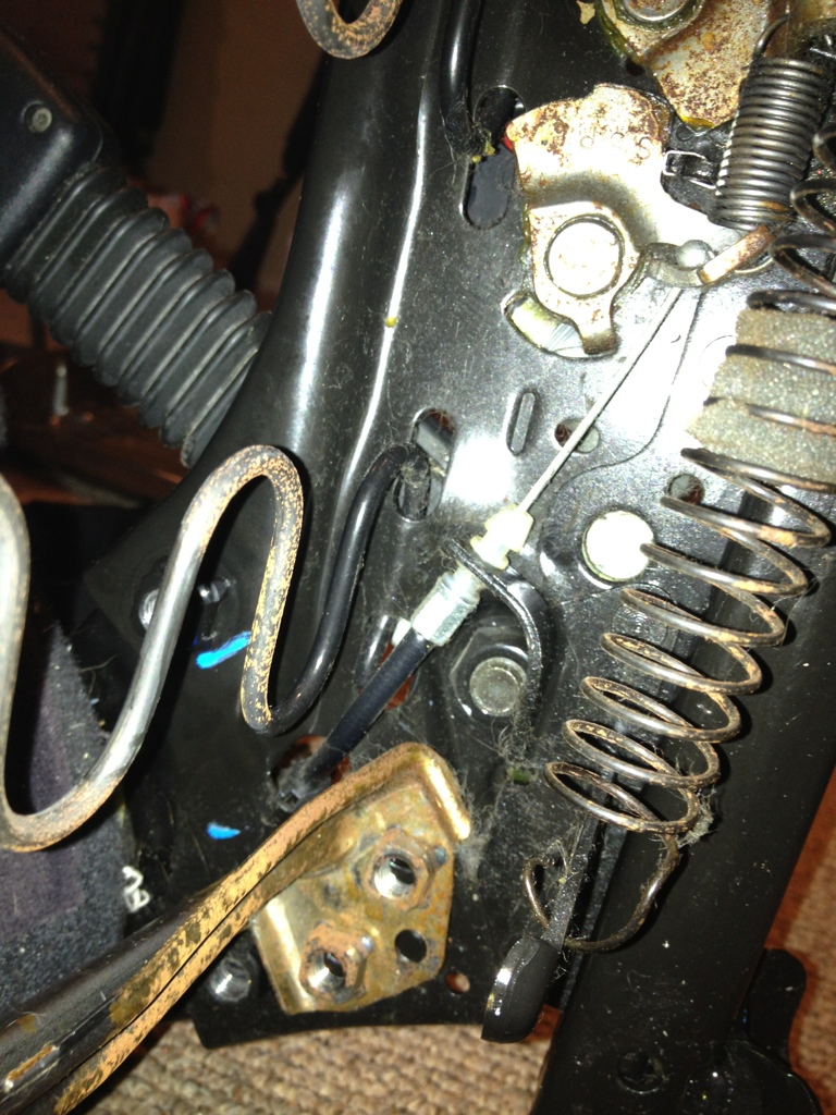 Now you gotta take off this adjusting cable off. Theres one on each side
