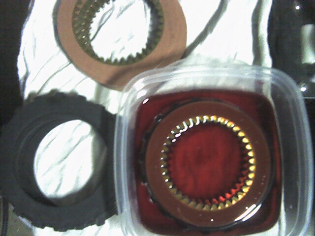 I got the TCI kit and am about 30% done building the tranny. Here is a quick pic I took of the clutches and plates soaking in ATF.