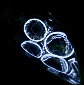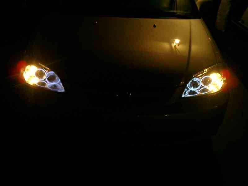 yours look pretty good. is that with the lowbeam on or off? on the TYC i put the streetglow neon wire around the highbeam, still the "angeleye" wasnt bright enuff to be seen at night with all the street lights and such.