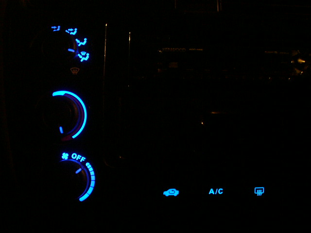 Some of you may have done a dash light swap/conversion, or put on some condoms to change the color of your lights. I did a blue LED conversion for all the temp control stuff and the lights turned out to be too dim. So I made a DIY of how to make them brighter. This is really easy, it just requires removing some light shields. AFter a while i'll be doing this same thing for the Cruise Control, Sunroof, and power mirror buttons, and maybe even eventually for the lights next to the shifter in an automatic. I guess the mods can decide if this is good enough to make it sticky.