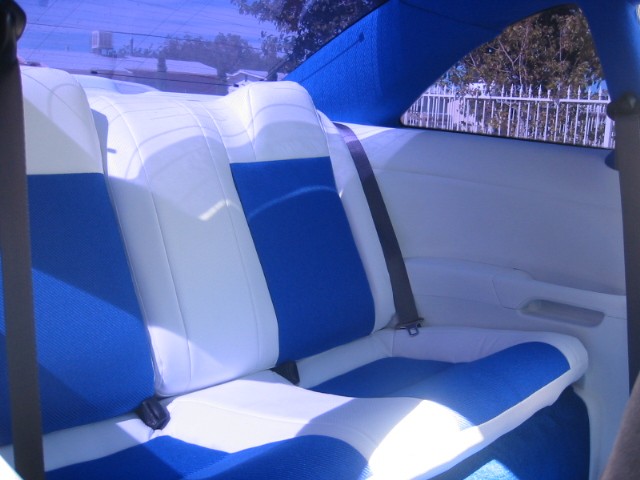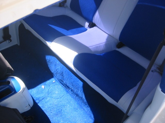 " in a white carbon fiber vinyl with blue tweed scheme. Now my question is that i havent done my front seats. Im thinking should i get some racing seat and redo the racing seats in the white vinyl and bule tweed? Or should i just redo the stock seats. One of the stock seats is rocking?