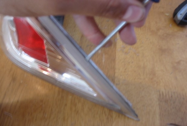 5. Take them out and start to pry them with a screwdriver. Or u can use something esle just something harder than the razor. You start to lift the lense out of the groove that its in. Do it slowly little at a time. The first lense on the practice altezza i had i crack it