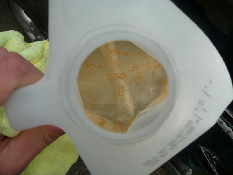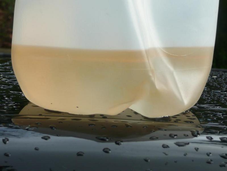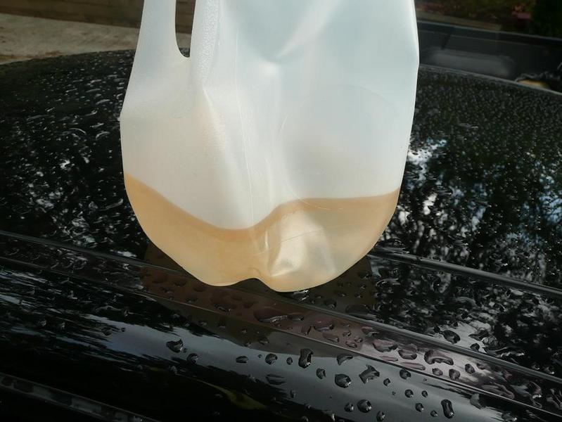 Let me know if you think this is still water. I spoke with the local race fuel store guys and they said that water will distinctively sit at the bottom, and if it's yellow, it should still be fuel...