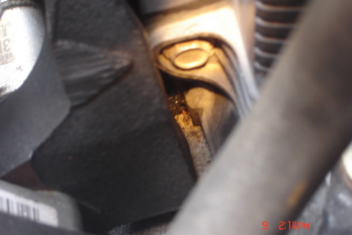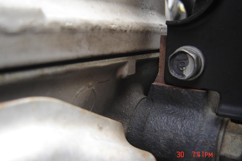 it was making small puddles after a recent oil change then stopped, and a couple mechanics have mentioned they think I am leaking oil, I looked closer at it, and noticed it sounds a little rough and it was leaking a little, I thought it was a cracked pan from the collision, my buddy kept pointing to this spot i pictured..... doesnt speak very good english... I think he was talking about the head gasket he said I should take the valve cover off and replace a seal (gasket)??/