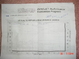 i did a run before tuning..i had on my car header, custom exhaust and high flow cat, that's it..with this set up it was pushing 94 to the wheel..after tuning ( apexi, cam gear, power pulleys, cia) 109 to the wheel, and 107 tq..i think i lost 3 tq because of the 2" exhaust pipe...