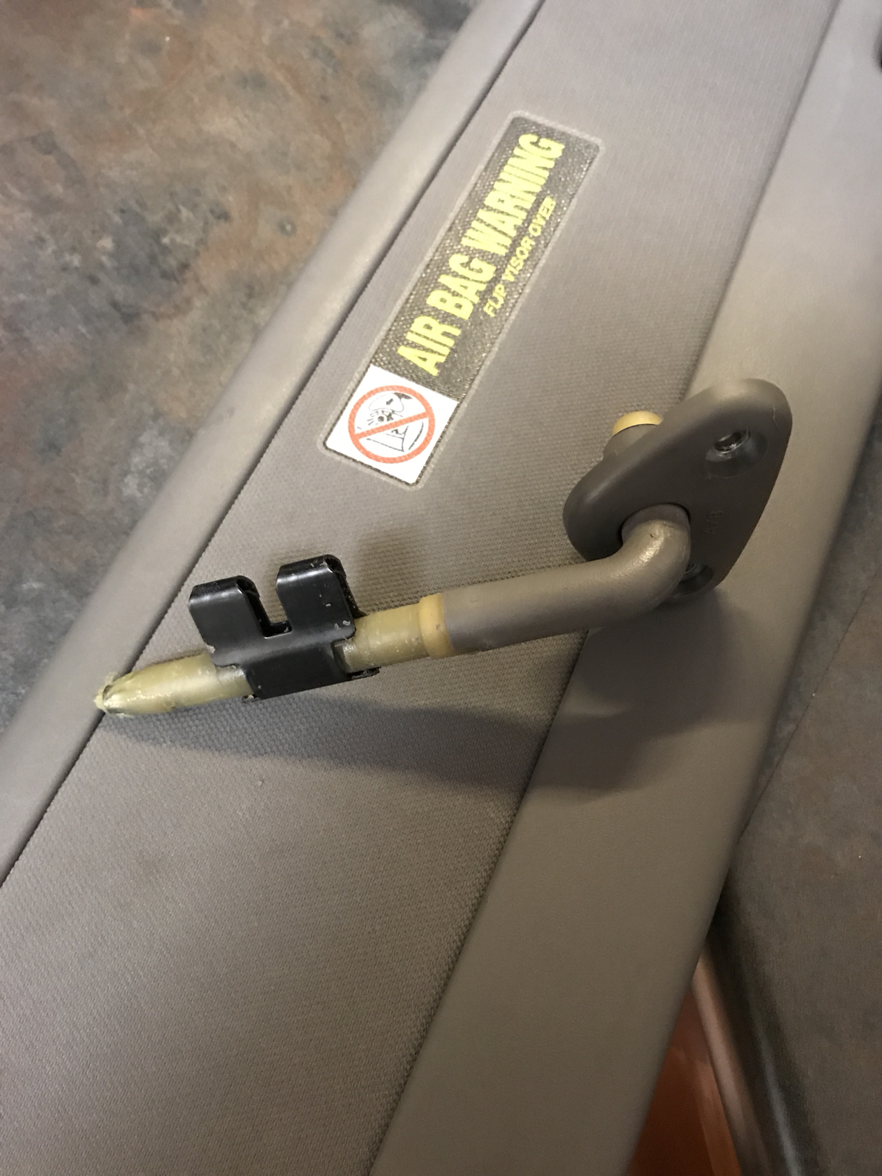 I took the post out of the visor and also saw there was some sort of a thing (lol) that looked like it's supposed to sit in between the teeth of the post... so I rotated just the black metal part 180°, "gently" put it back together, drilled holes (1/4" bit) - one roughly a 1/4" from the edge, and one a few inches away in the center... this I think you can wing under your own discretion but definitely don't drill through or on the post - and screwed in the Hillman screws + posts, put it back on the car and voila *fist pump* y'all, it opens, closes, and STAYS closed!!!