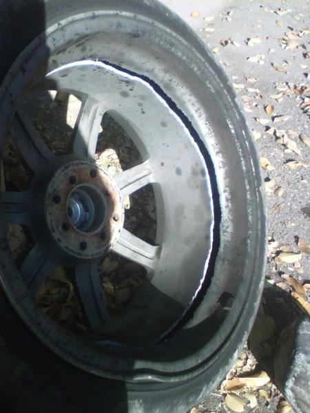 Well to make a long story short I ran over a three inch rock with my wheel and split it all the way around!