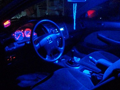 lightningslp77: yea, all that light is from just my front dome light, and rear dome light which are both blue. out of my 3 front lights, only the middle one is blue, the two side ones (map lights) are both white, because if i need to turn on a light to see something, white is what you want, not the blue. when you open the doors or turn on the dome light, the front middle and the rear light are the only ones that turn on, and yeah those two alone make all that light. i dont have an interior kit installed at all. the only cache is that the brighter you want it, the slightly bigger the bulb is. as i have it now, i have 13-led bulbs installed and they are just barely too long outwards to slide the cover over. i have a set of 2-led bulbs which are the same size as stock. i would think you can go up to a set of 5-led bulbs and not have a problem, but im not sure since ive never tried.