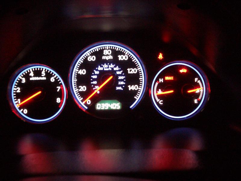 Thanks to all your help guys...Did my coupe (red ring) gauge swap to the sedan (blue ring) gauges today and it went as smooth as possible. All the lighting is perfect...the gauges work perfectly...no cel or other unnecessary lights...only thing is I need to get my odometer reflashed...Here's a couple pics.