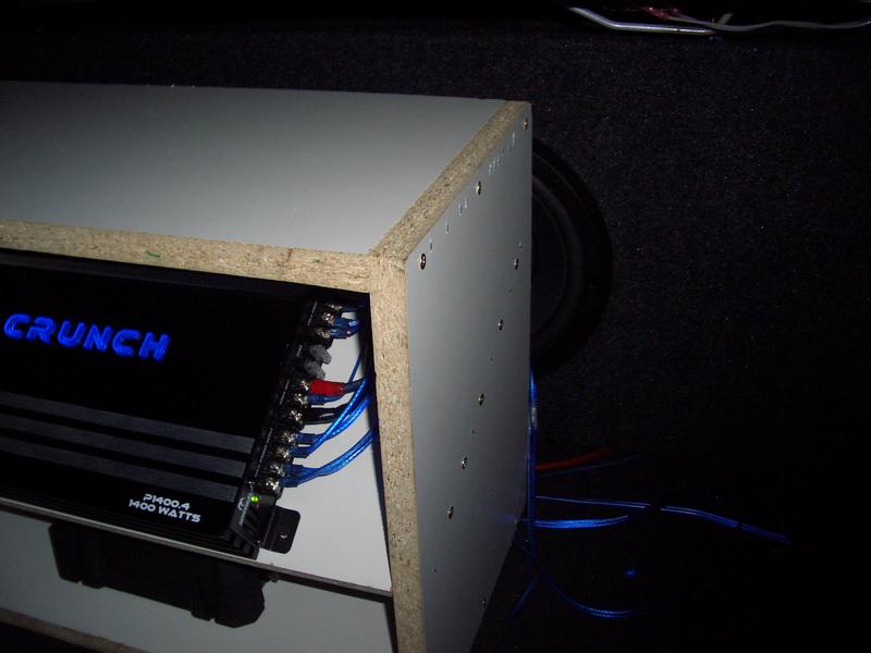 Also, just got my sub and amp set-up done...gotta clean up the wiring...paint the amp rack...and maybe even move/ build a new amp rack...Here's also a clean pick of the sub box...kinda hard to see in my trunk...