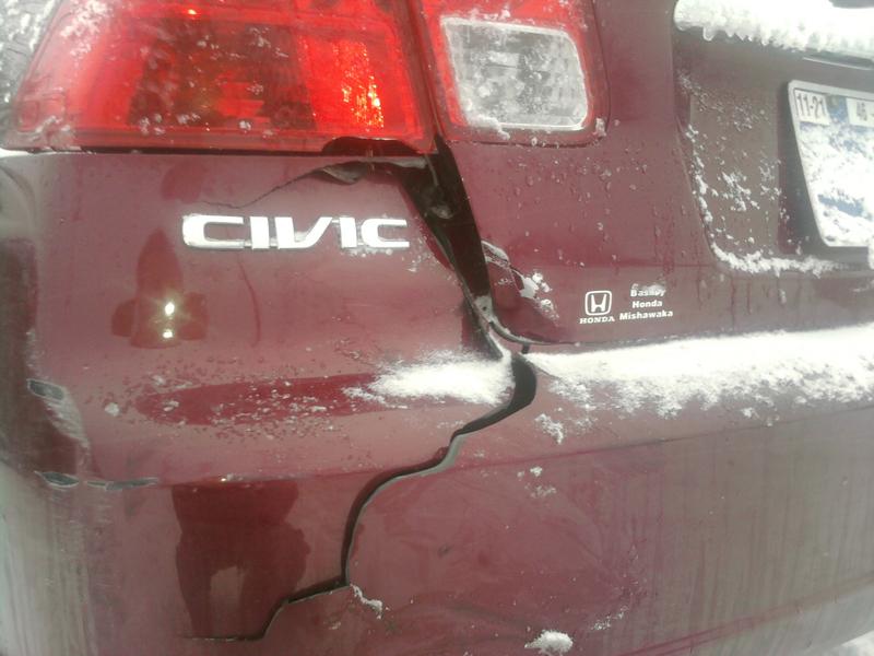 ^ that sucks.. pretty much the same damage on my car except only my bumper was hit... insurance wanted 500 deductible. i can do it for way less so im doing it myself at my buddy's shop