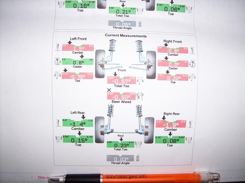 I hooked up the rear camber kit and the front camber kit today and toke the car to Firestone to get an alignment... It toke them 2 hours than they call me inside to look at it