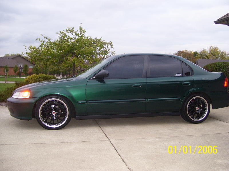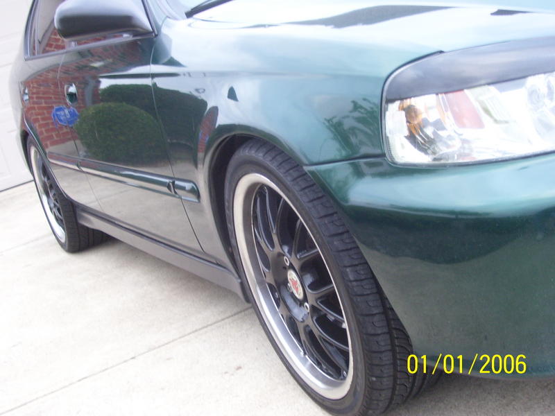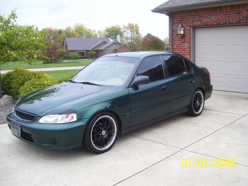 yeah, get black out your headlines and be like EVERYONE else on this board. I kind of do agree that the eyelids detract from the look. Other then that the drop is sick, and you got a good looking tint and rims. Werent there some tailights that were just red and white, I think on the SI?? Those would look pretty sick on there (if they fit!?- cant remember what year that was, I thought it was 6th gens). Props.