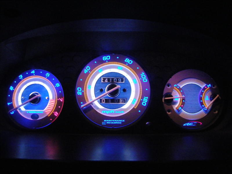 NExt thing on my agenda, I absolutely hate my cluster after seeing the new types that come in accords and such with the LEDs in the needles and all the numbers are individually illuminated In Love . I bought a replacement face plate for mine which is white with red writing, it kinda tuff but it still boring. Its the lighting that is the real problem!!!