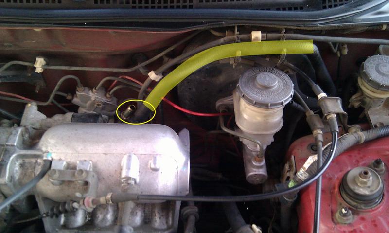 I'm going to wait until the oil needs to be changed again (late spring, I think). And then use 1/3 bottle in tank, oil, and brake booster line. I want to make sure I've identified the brake booster line, picture attached. I can take the booster line off of the little spigot on the mid-back of the intake manifold (I think?) and I'm considering using a turkey baster (like a big syringe) to drip the seafoam in. The 'spigot' is circled in the picture.