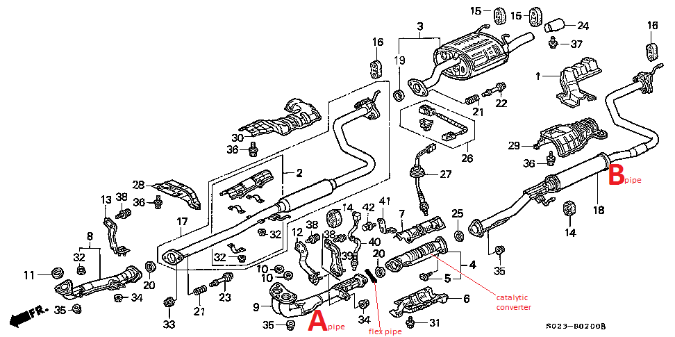 Attached is a diagram. I guess they didn't even use flex pipes back then because it's not even on here?