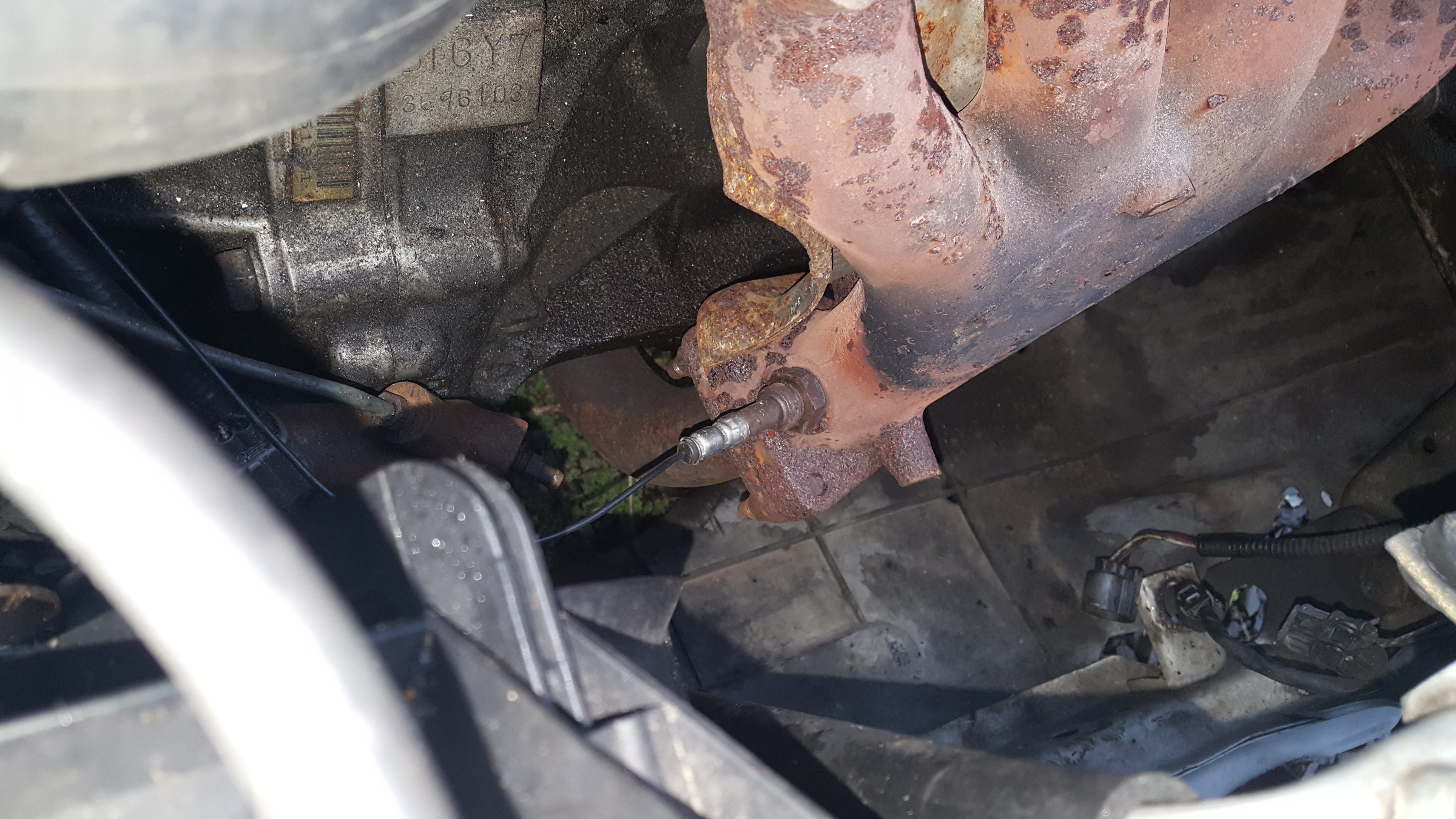 Ok, I know she isn't pretty. My question is the exhaust manifold is not the one everyone talks about. 98 lx, the manifold comes down and a down pipe to flex tube to the resonator pipe. I want to replace the cat because my o2 sensors are not hooked up. The one on the manifold has its wires cut and replacing the cat would allow me to add the second o2.
