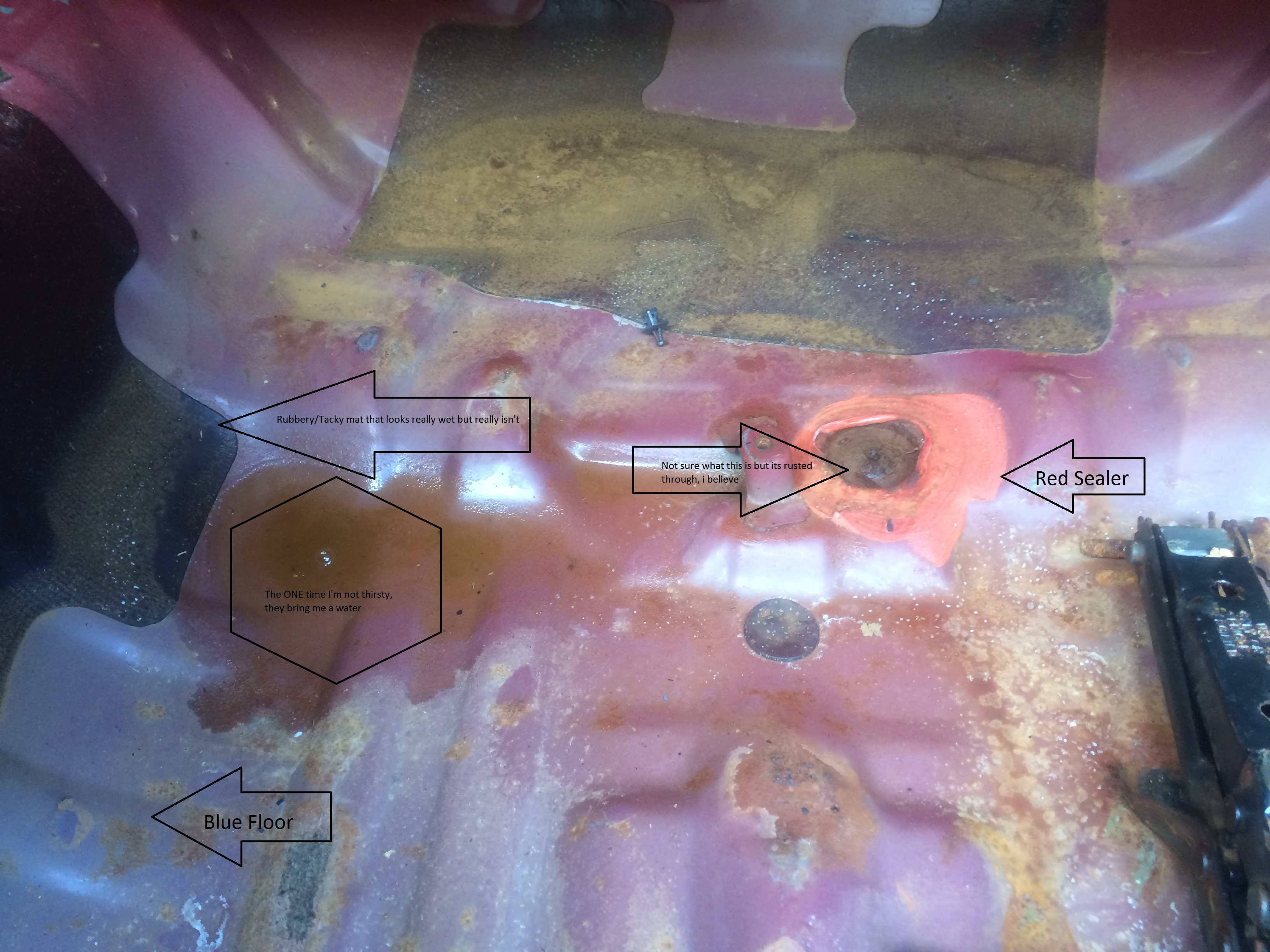 Floor is red, car is red. Samey samey. It's not had the floor replaced or anything if that's what you are thinking. I'm sure you would find similar color elsewhere in areas not normally exposed like main floor under all the carpet..