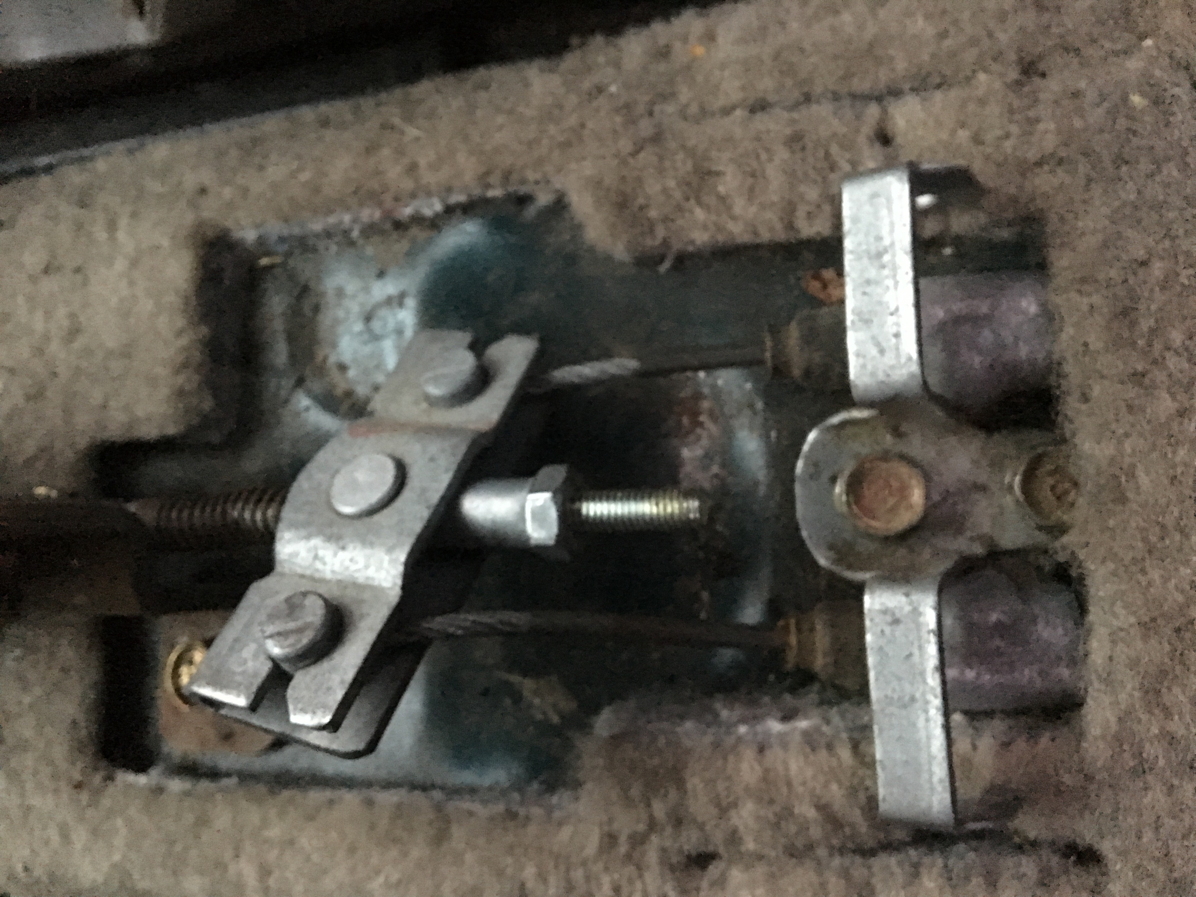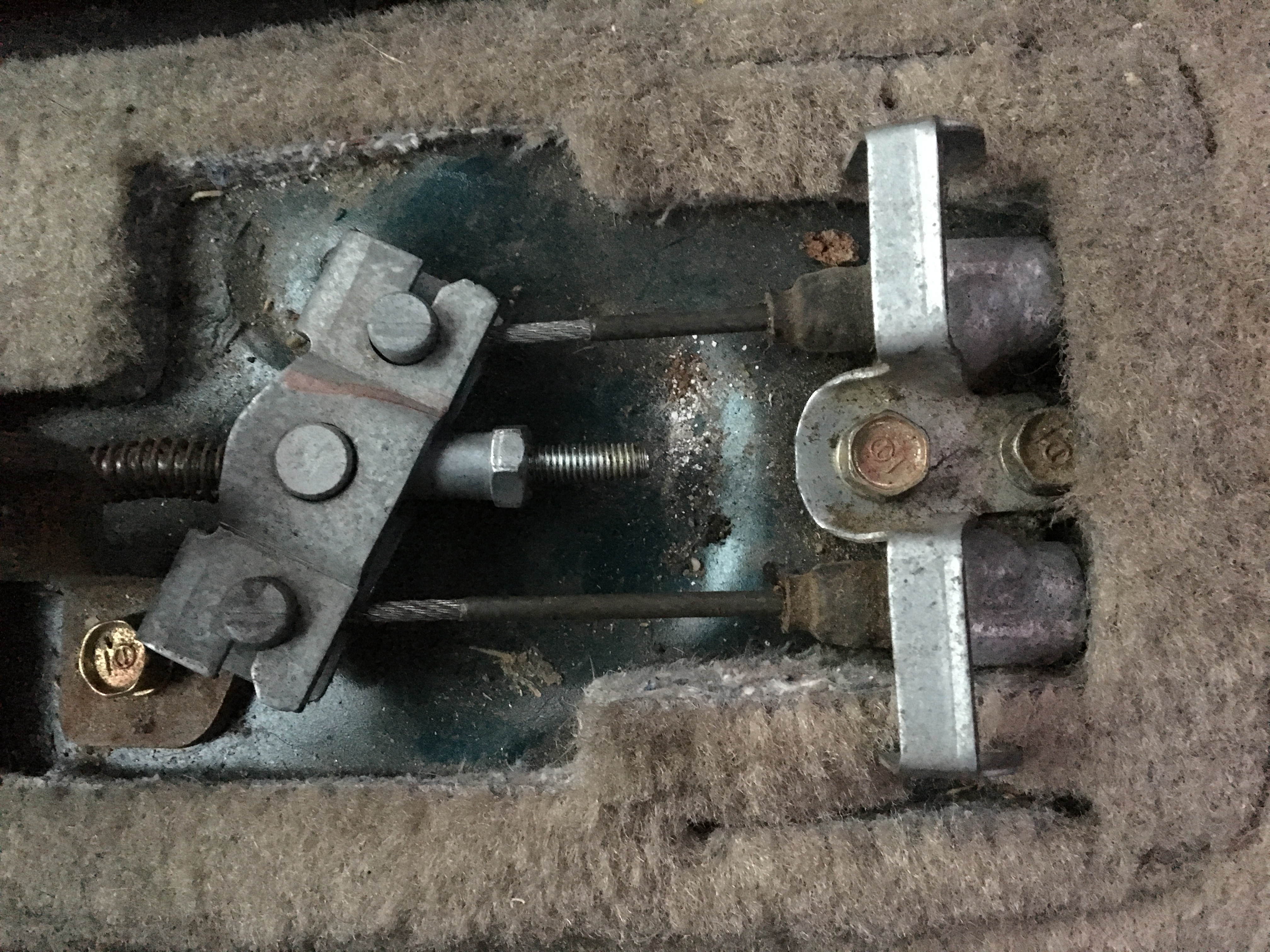 "Cable adjustment is usually at the front or rear of the first cable for the hand lever. You shouldn't attempt to mess with that until the rest of the system is confirmed correct. If anything is wrong in the rear cables or inside the drums, adjustments at the front won't be correct."