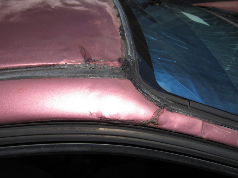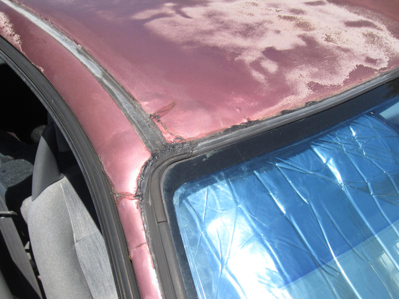 I have a 1994 Honda Civic. About 5 years ago I started to get a bubble under the paint on the roof in the upper right side corner. Eventually some cracks starting emerging in that area. There is also some bubbling and cracking on the pillar. The roof leaks through the passenger side visor where the visor mechanism connects to the roof. The headliner has started to come loose in that corner and I get a lost of rust particles that fall out of that corner onto the passenger seat.