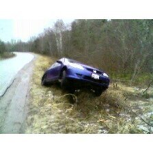 So on new years day, i was coming back from my buddies house, who lives kinda in the sticks, and it began to hail out. As i was coming down a hill, my brand new winter tires decided they dont liek to grip on black ice, and refused to turn.... i hit dead on with a rock... so, to make a long story short.... the frame is bent and i dunno whats gonna happen, ajuster looking at it tommorrow.....