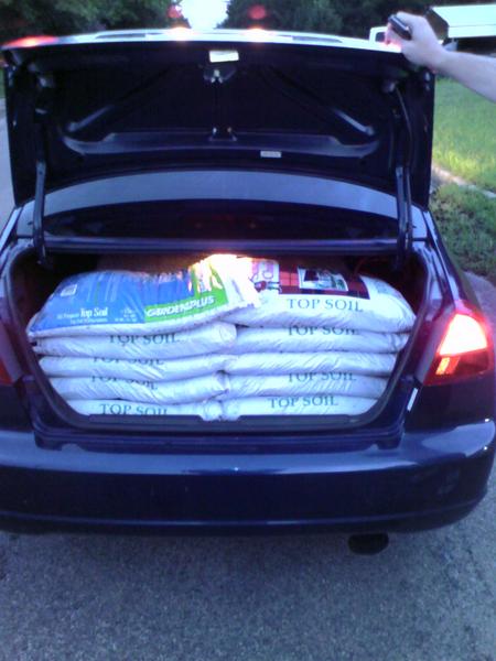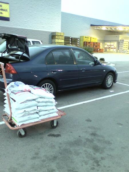 So to make her happy, we brought home 12 40lb bags. That is 480lb total in the trunk of the civic.