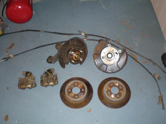 The next step will be to sort through all of the parts and figure out just what I will need and to remove the calipers and rotors so I can fix the bent dust sheilds and paint the calipers. I will post as I go.