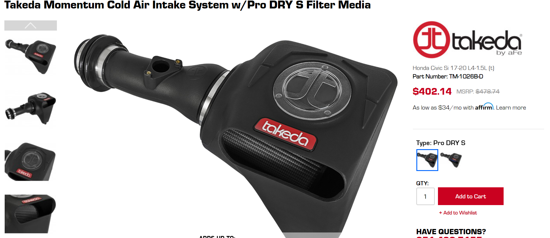 Selling my Afe Takeda Momentum Pro Dry S Air Intake(with filter). Lease on my 2017 Honda Civic Si recently ended - so no longer need it. Only used the intake for about 8 months - asking for $300. Pm me Located in Northwest Suburbs of Chicago. Air intake is currently priced at ~$400.