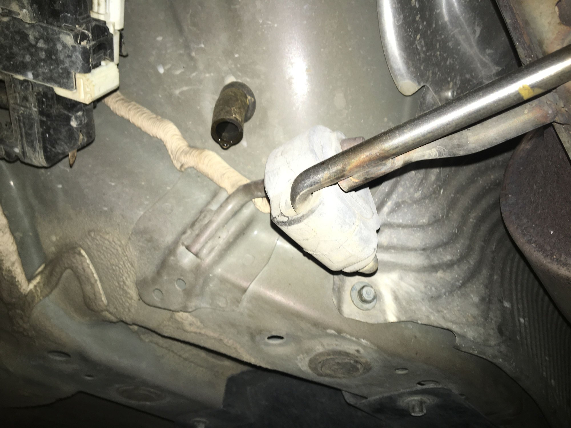 I was doing a doordash and our car was reeking of gas after filling it up so I checked under the car and saw a massive leak that was pouring water.. after driving home scared that it was oil since I just did an oil change yesterday (thought it could be an oil filter).. I got home and found out it was a hose under the car. It looks like it’s leaking water because it’s clear with no smell or anything. Could I get any help here with finding out if this is the A/C hose, a overflow hose, etc?