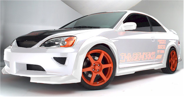 Bleh. Doesn't anybody understand that since our Civics have sharp lines, a curvy body kit doesn't go with it? Those fenders are plain circles on a car that has not one circle on it outside of the lights and rims. Don't mix styles - you get crappy looking kits... like that one.