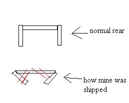 see the thing is it sat in a box being shipped for a week with the sides of the rear taped in so that they would fit in the box. this is kinda how it looks. the sides were held in by tape represented by red in the picture. i dont know how the side got messed up, but it is just twisted a bit.