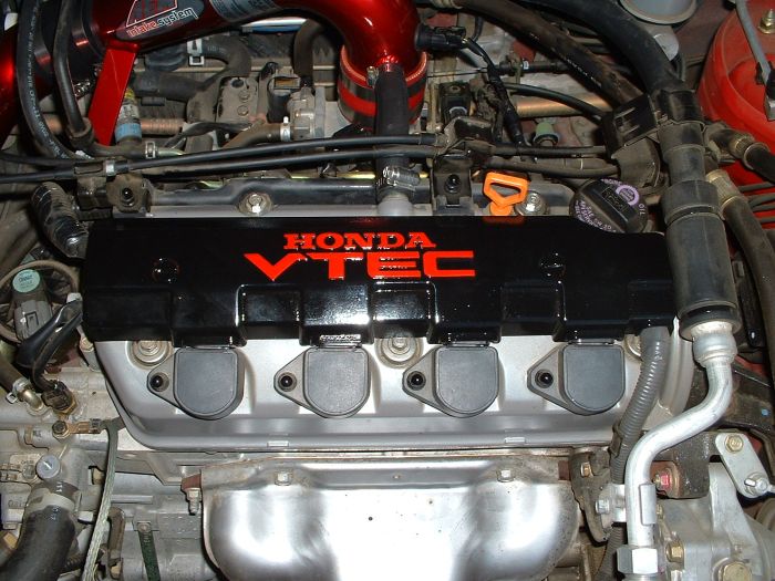 8. the Finished product: a professional looking red valve cover with black lettering for the price of 20 bucks + a few hours of my time.. takes a lot of patience to do a good job.