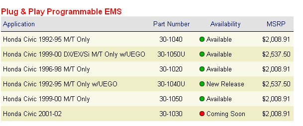 Oh and by the way - if you are referring to the 1070 - its been out for a while now. The 1030 which is SPECIFIC to the D/K series cars (ie it can drive the AC and all gauges) isn't released yet. AEM can't figure out honda's bus system...