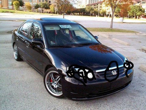 HEY HEY HEY GUYS!!! Thats MY CAR!!! WHAT DID YOU DO TO IT!!! lol j/k man... I have eyelids on it now so it looks much better. I think the top one looks better though, the second is kinda akward. I guess I should feel special that somebody actually worked on my car... Try this, cover the top portion of the light so you can make it look like its pissed, if you know what I mean... Or, do the same thing you did to the first one, but cover some of the top part too...