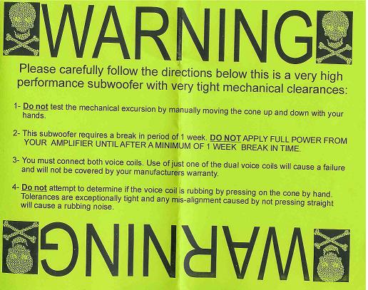especially if underpowering it by 400rms, i wont have any probs cranking it once its broken in.. my amp could never blow it :P or atleast i dont think it could.. :P Thread Starter
