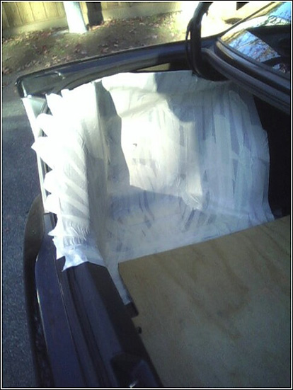 So far i have cut out the speaker rings and taped of the trunk. didn't have enough light to start fiberglass, but going to start fresh tomorrow. I love christmas break! so many things to do, so little time.